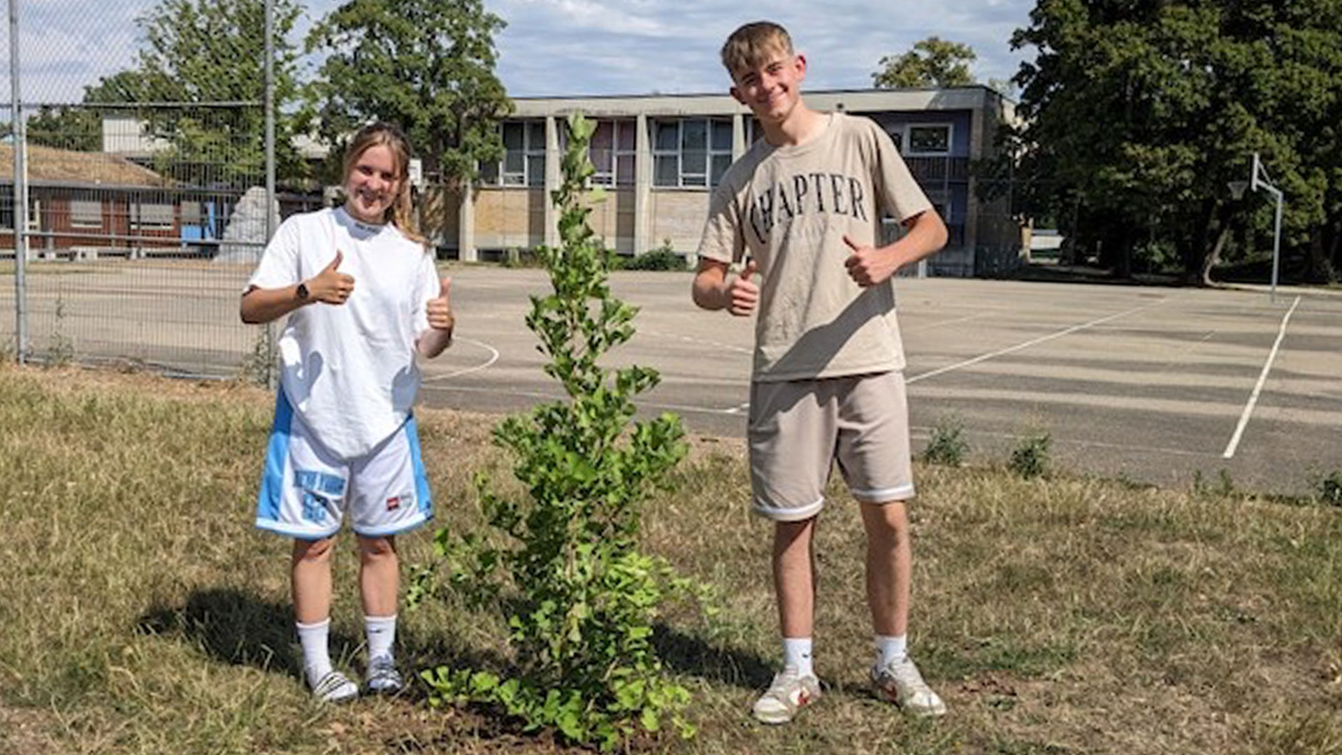 Die diesjährigen Zehntklässler ließen sich für ihr Abschluss-Denkmal etwas ganz Besonderes einfallen. Sie pflanzten als Erinnerung gemeinsam einen Ginko-Baum.